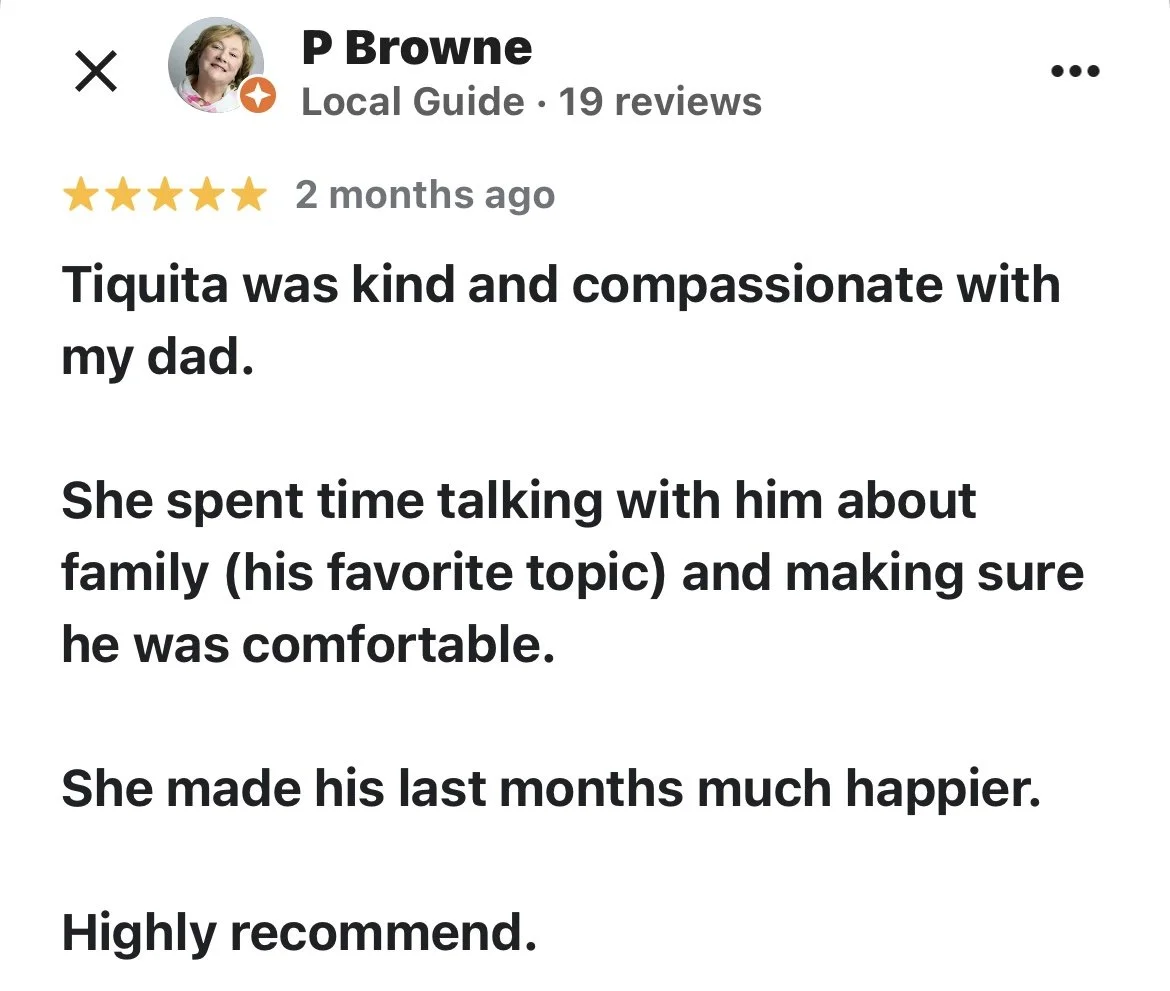 "At Praise Home Care Services, we believe that everyone deserves to age with dignity and comfort in their own home. Led by CEO Tiquia Matthews, our team is dedicated to providing compassionate, professional care tailored to the unique needs of the elderly and those requiring extra support. We treat your family like our own."